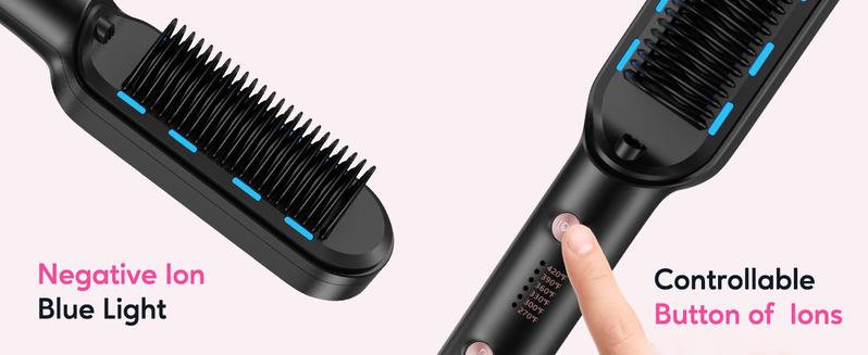 Frizz-Free Styling: This hair straightener brush comes equipped with a negative ion switch and an elegant blue ion indicator, releasing millions of negative ions that penetrate deep into your hair.